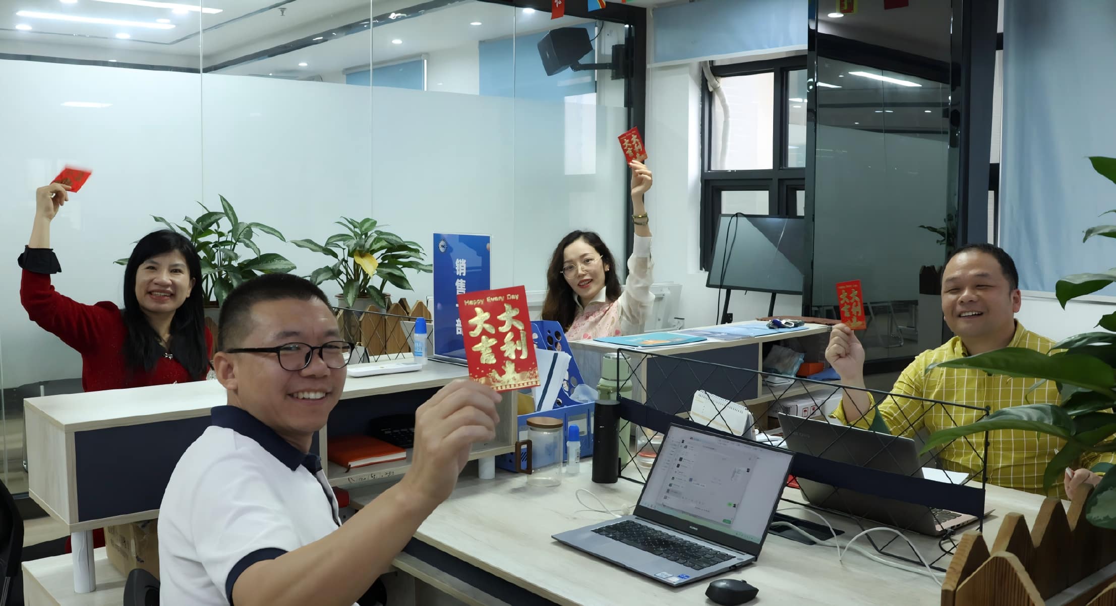Post vividam caerimoniam, laetissimus conductorum momentum advenit – involucra rubra distributio Novus Annus! Capita singulatim tradita sunt involucra rubra benedictione et fortuna referta, personaliter cuique redditi molestie redditi. Haec societas Novus Annus omnibus salutatus fuit, et etiam incitamentum erat ut omnes ad laborem redirent ac novum proelium committerent! Recepta involucra rubra, omnium facies lucidis risibus repletae sunt, et aer in scaena tepidus erat et fovere.